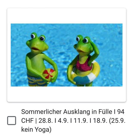 28.8. I 4.9. I 11.9. I 18.9. (25.9. kein Yoga) Sommerlicher Ausklang in Fülle / 94 CHF